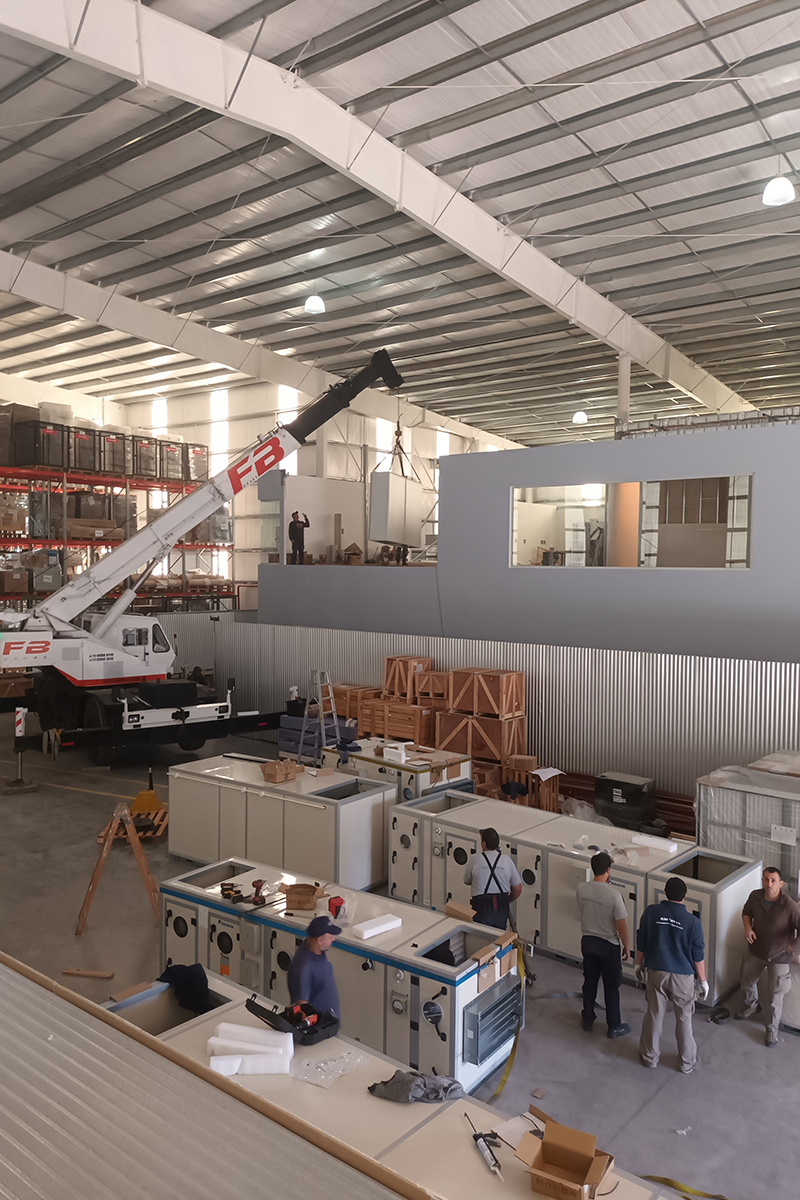 La obra se lleva a cabo en un galpón nuevo a estrenar, todos los servicios tuvieron que ser diseñados desde cero. El proceso tuvo etapas de desarrollo de ingeniería ejecutiva, compra de equipos, instalación y montaje, puesta en marcha y apoyo para la calificación del sistema.
