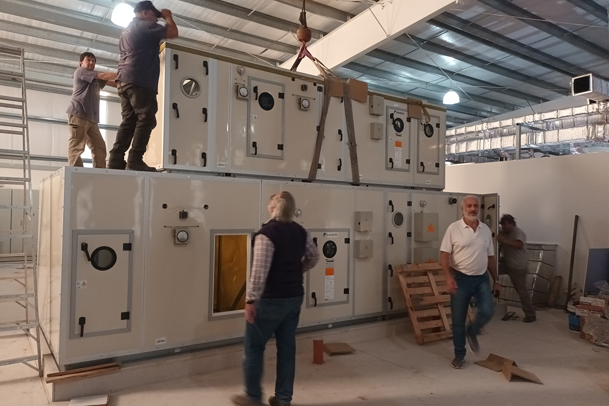 En total trabajaron unas 28 personas entre técnicos, oficiales de montaje (conductos y piping), profesionales especializados en electricidad, control y calificaciones.